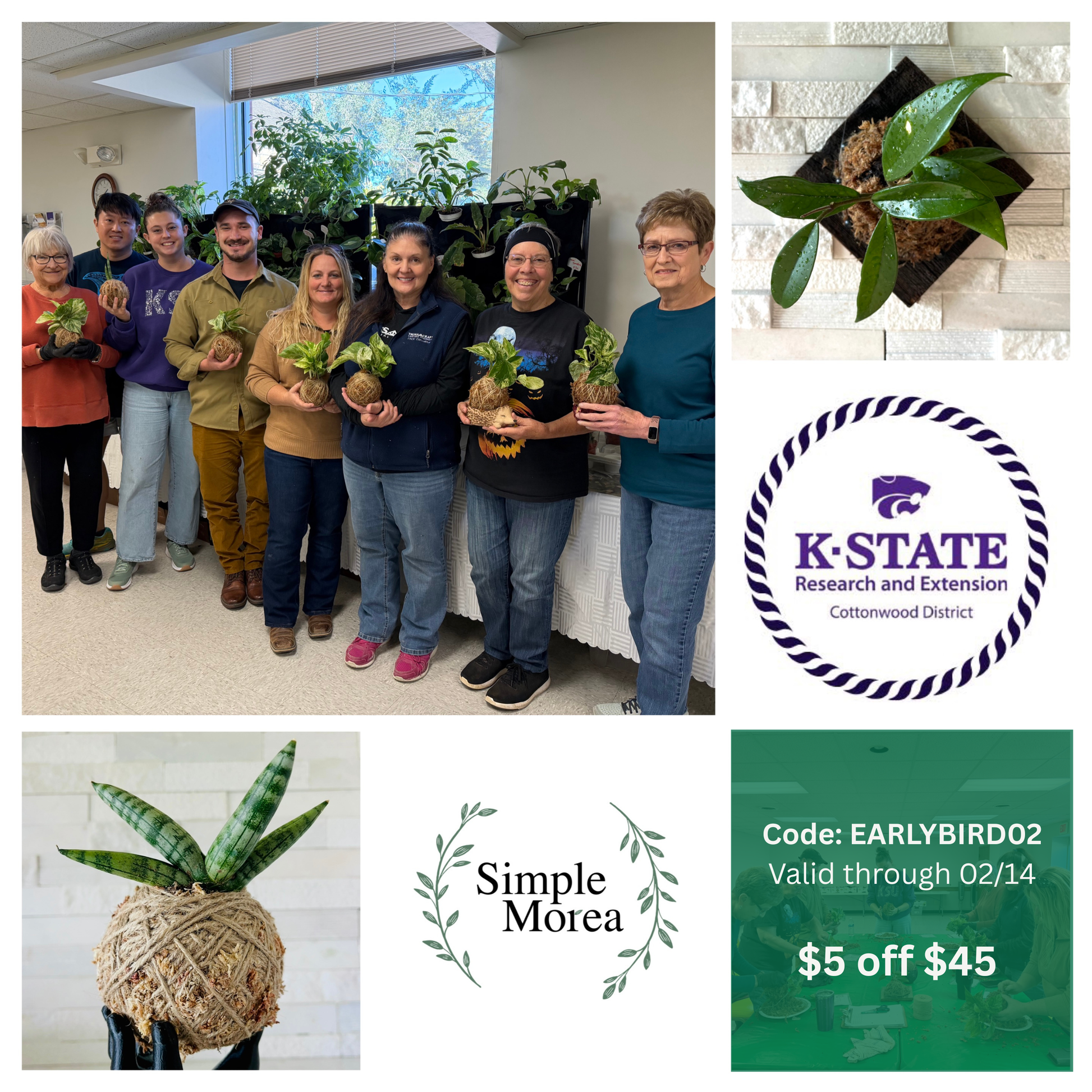 Come and treat yourself to a class of GREENERY @ K-State Research and Extension - Cottonwood Extension District (601 Main St, Hays, KS 67601). You have the option of creating a wall mounted art or learning how to make a Kokedama, which means "moss ball" in Japanese. Walk away with your own garden art creation that will make for a unique personalized gift or addition to your home and garden décor.